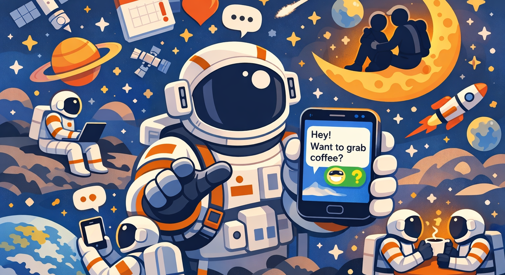 After a year, that was 52 invitations. Maybe half said yes. That's 26 coffees and calls and walks that would not have happened otherwise.